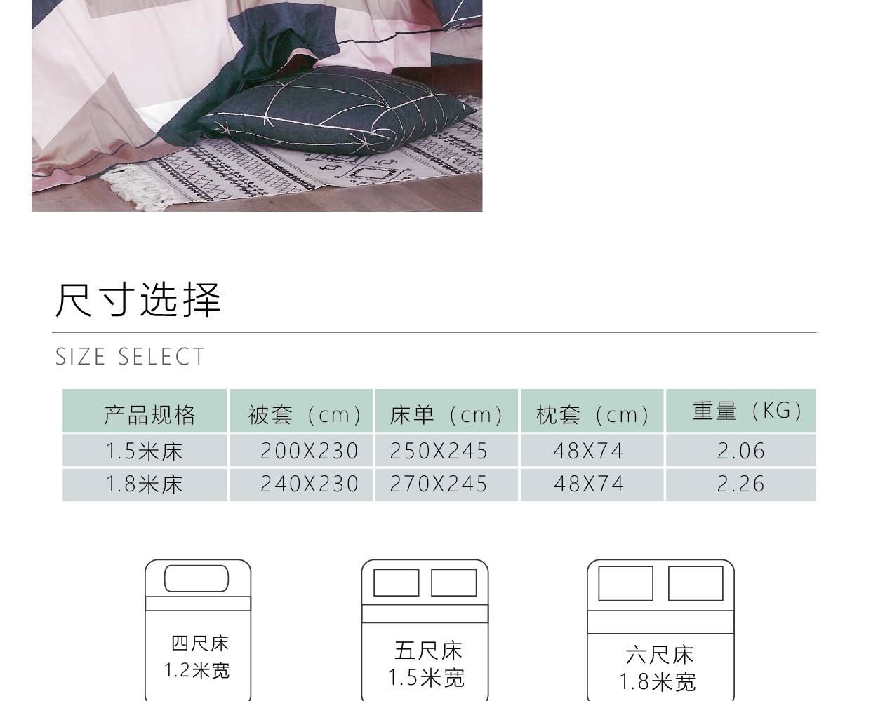 产品规格:200*230cm(1.5米床),240*220cm(1.8米床)