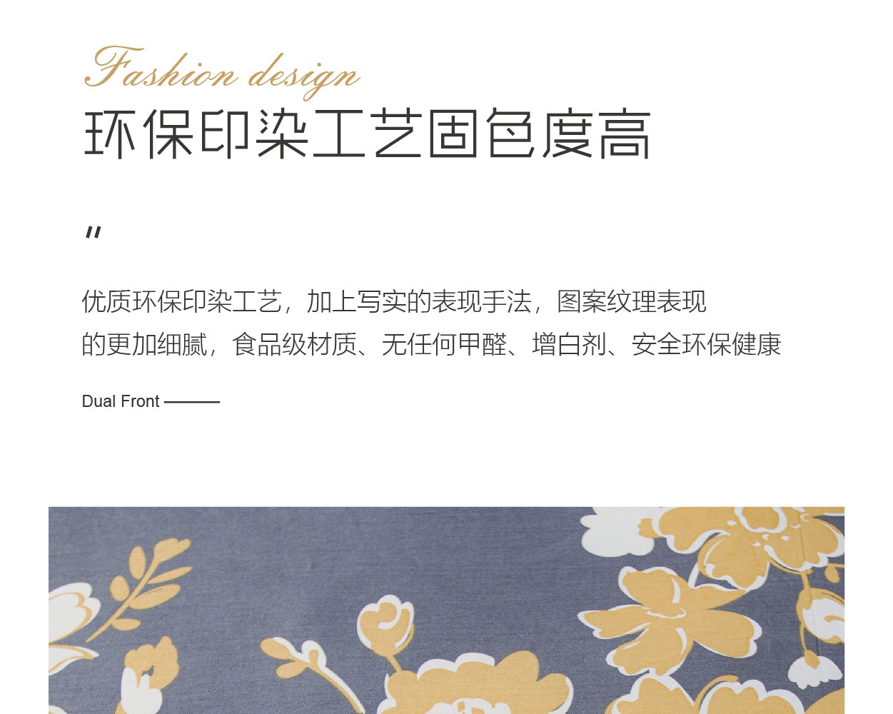 描述:100%纯棉面料,优质环保印染工艺,无任何甲醛、增白剂、安全环保健康 全棉面料,吸湿透气,滑爽亲肤,带给您舒适的睡眠体验