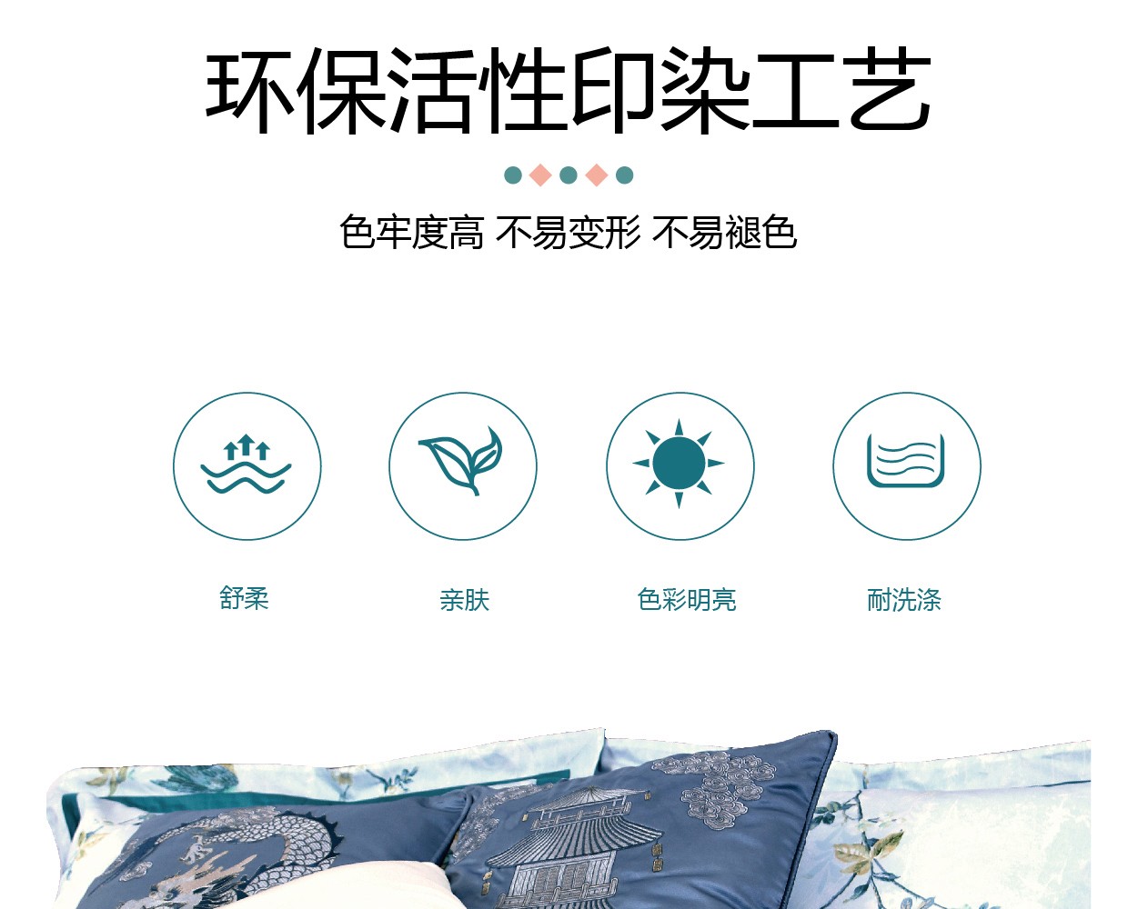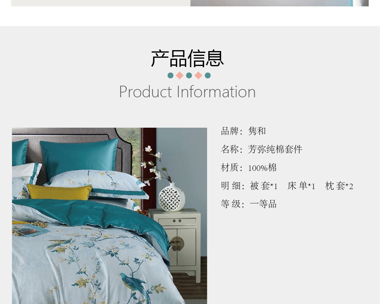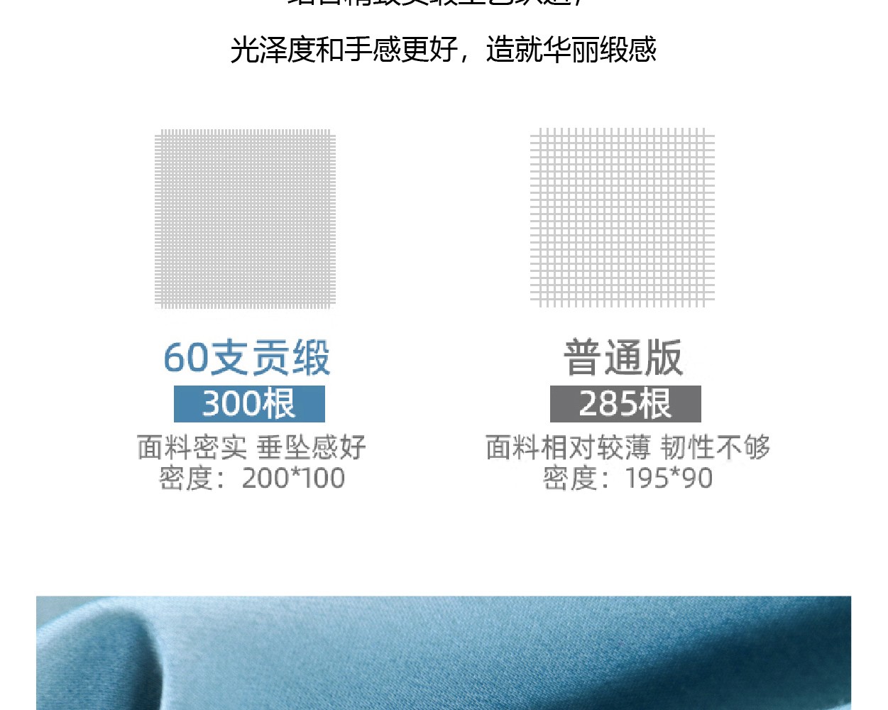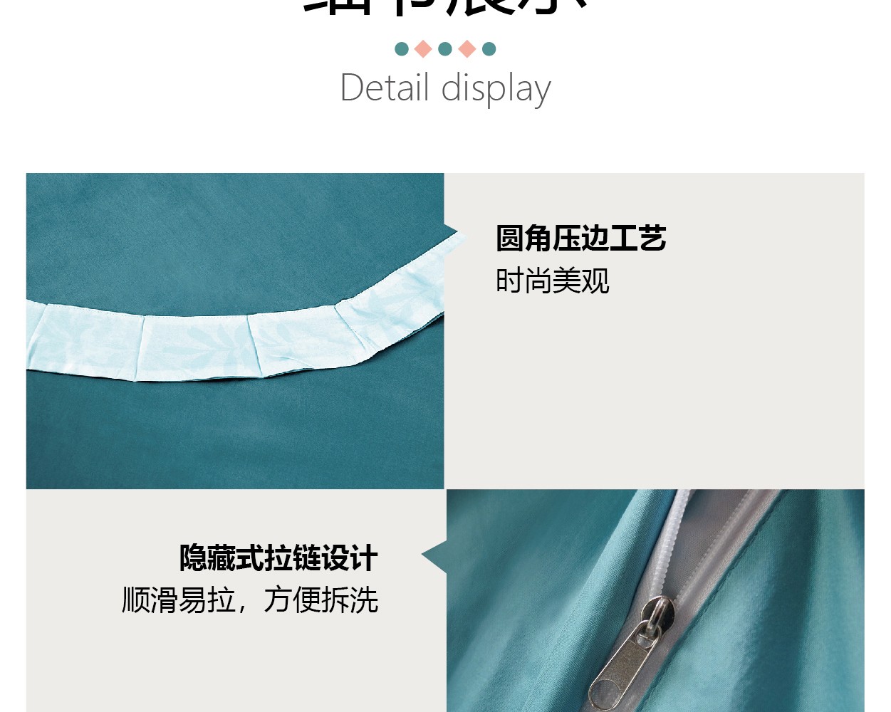 描述:60S天然纯棉面料,如软纯粹,细腻亲肤 织造面料的每一根纤维选取长度均大于30mm,精梳去除粗纤维,无任何断线起球。 安全环保印染工艺,让你睡得更放心,带给您舒适的睡眠体验