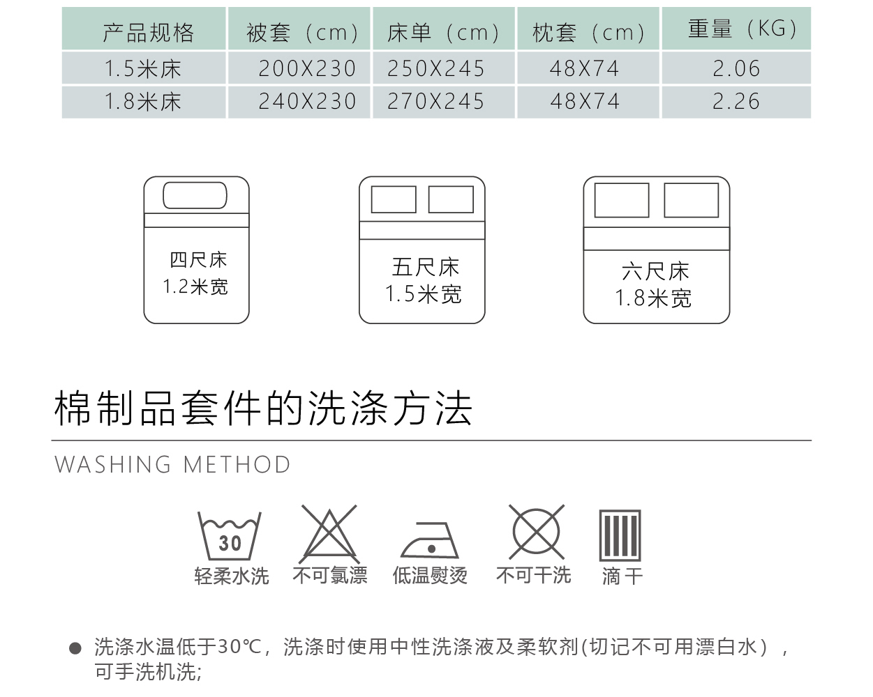 产品规格:200*230cm(1.5米床),220*240cm(1.8米床)