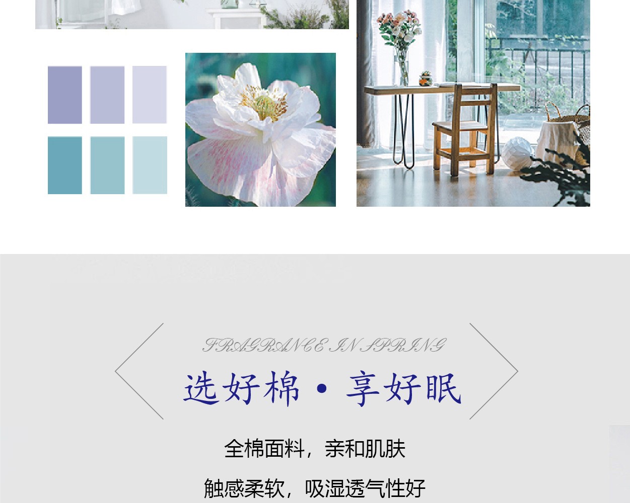 描述:优质环保印染工艺,无任何甲醛、增白剂、安全环保健康 全棉面料,吸湿透气,滑爽亲肤,带给您舒适的睡眠体验 织造面料的每-根纤维选取长度均大于30mm,精梳去除粗纤维,无任何断线起球。