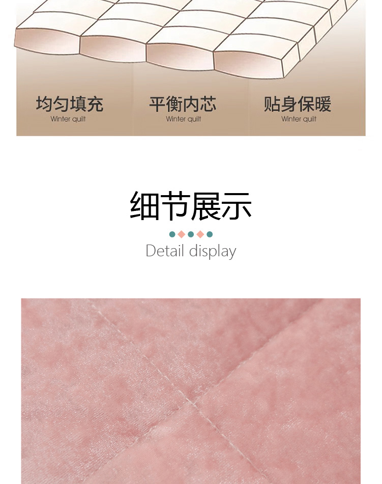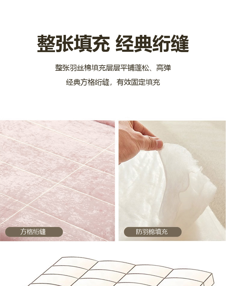 描述:采用双层设计,不压身,完美锁住温度,优质面料柔软亲肤,固定填充不板结不变形。