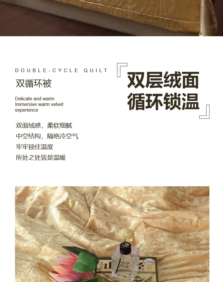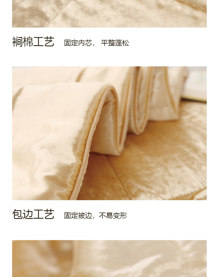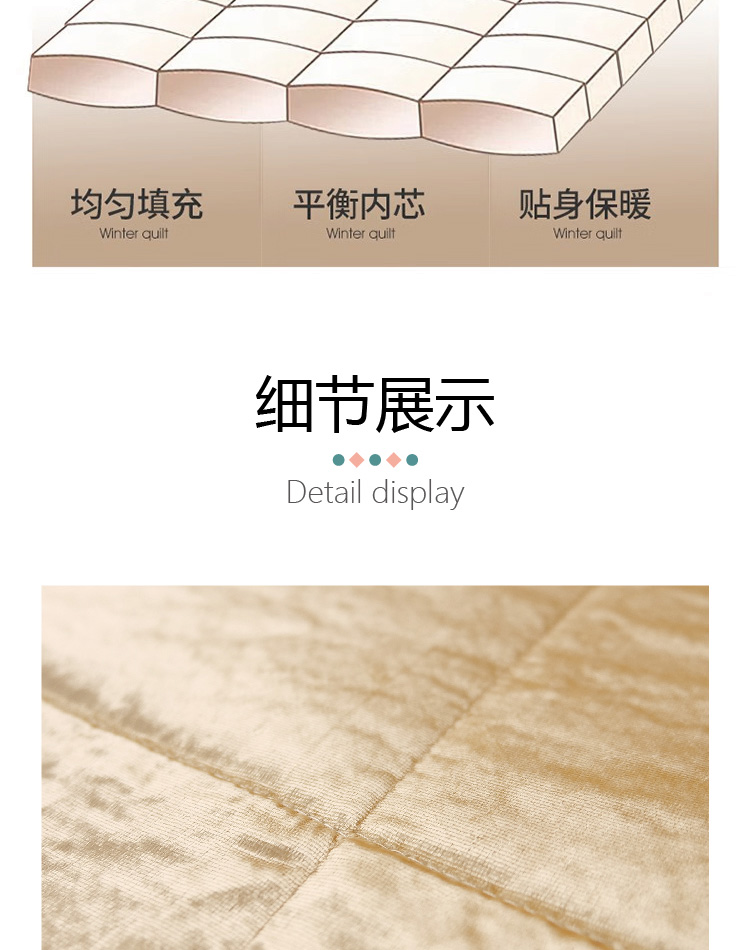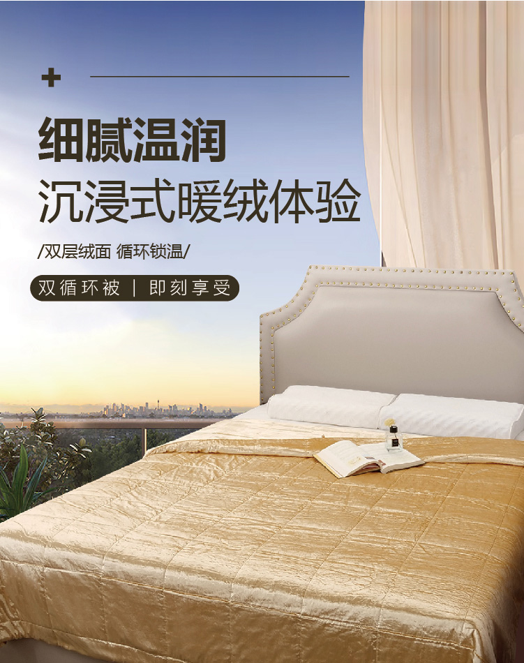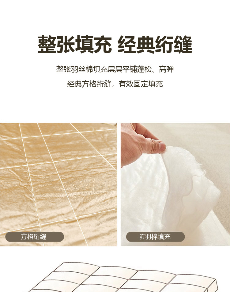 描述:采用双层设计,不压身,完美锁住温度,优质面料柔软亲肤,固定填充不板结不变形。