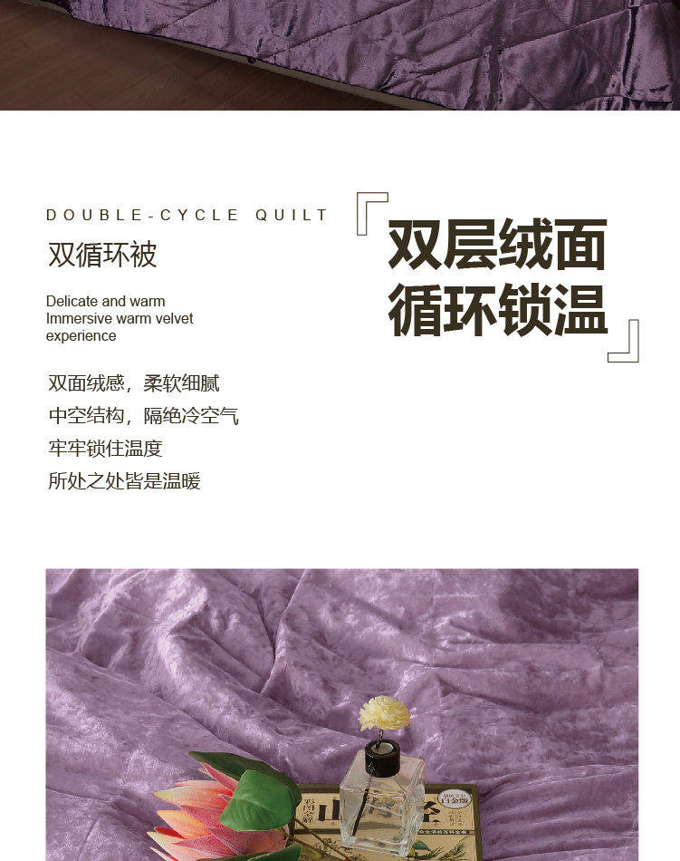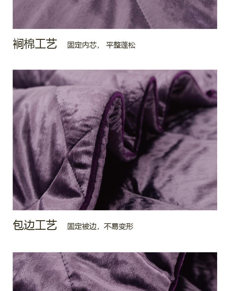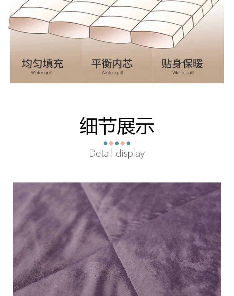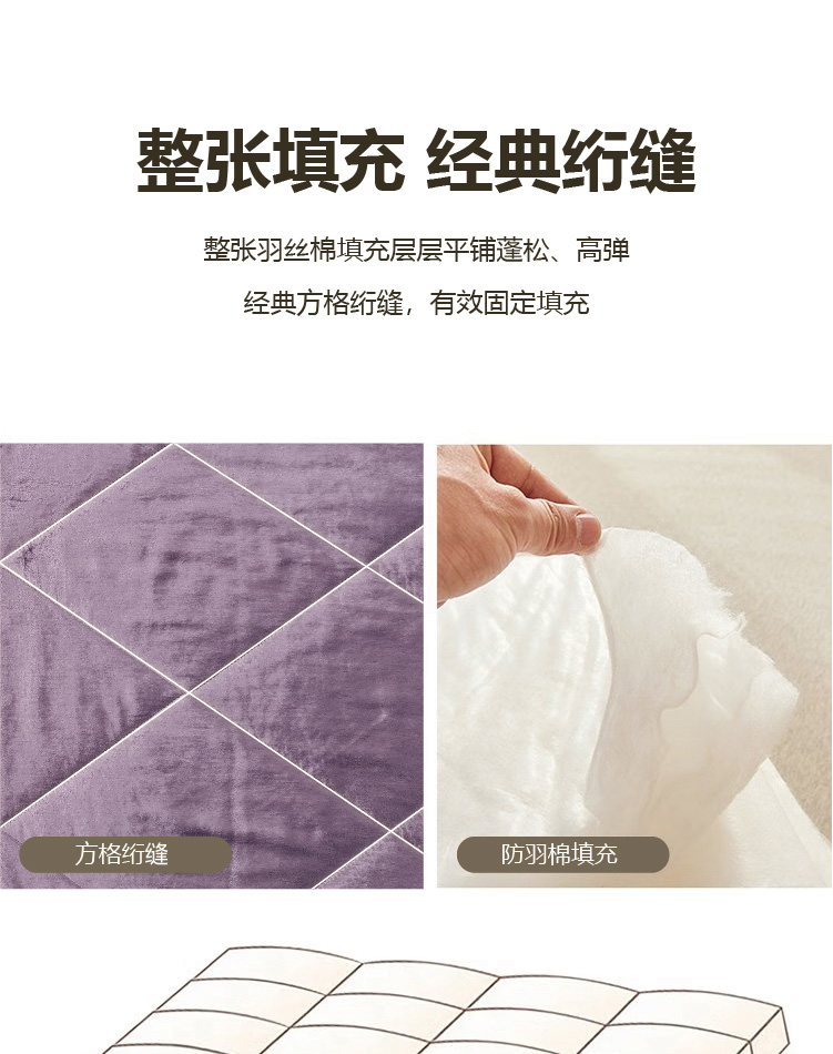 描述:采用双层设计,不压身,完美锁住温度,优质面料柔软亲肤,固定填充不板结不变形。
