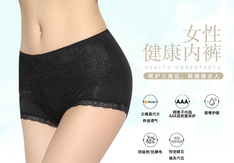描述:精兰莫代尔面料.内镶18颗生物磁片,24小时释放磁能量,更有银离子抑菌、防辐射、舒适透气,再也不用担心例假的痛苦,呵护女性每一天