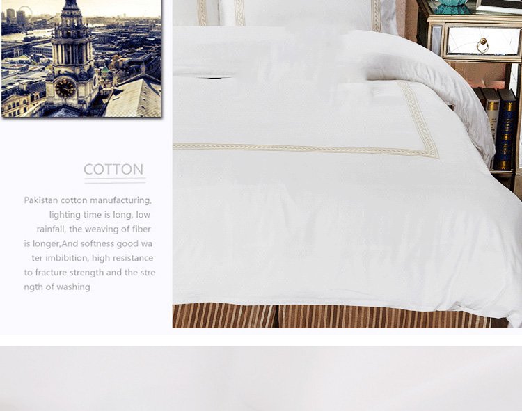 描述:本公司为客户提供各种酒店布草,多种款式、支持来图定制,均是全工艺一手品牌面料,细致考究的工艺,富裕每一个床品细腻如绸的柔软触感。