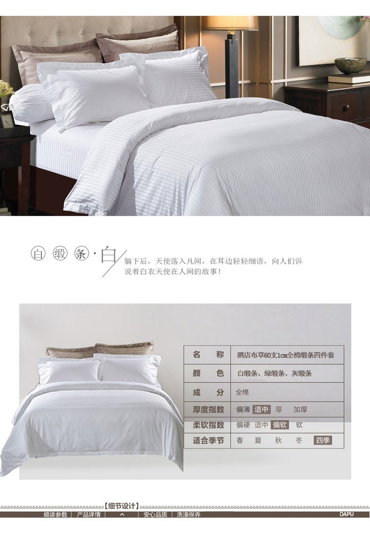 酒店布草60支1CM全棉缎条四件套